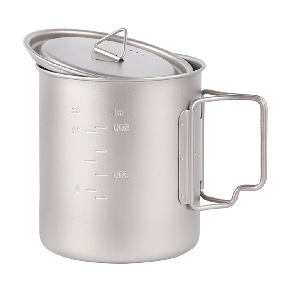 Aomiun Camping Titanium Cup, Ultralight 750ml Titanium Pot Portable Titanium Coffee Mug with Lid and Foldable Handle Outdoor Camping Cooking Picnic