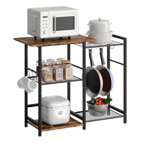 OGEMXU Kitchen Microwave Stand,4-Tier Adjustable Bakers Rack,Multi-Purpose Kitchen Storage Cart for Coffee Station,Space-Saving Metal Appliance Shelf for Living Room (Rustic Brown)