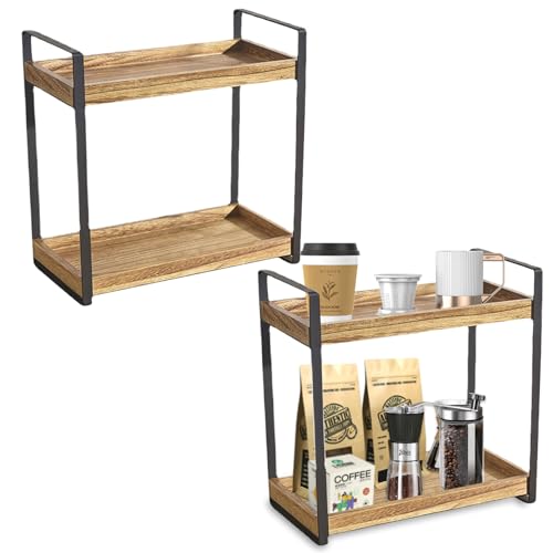 Gzsekken 2-Tier Coffee Bar Organiser, Minimalist Wooden Coffee Station, 2 Pack