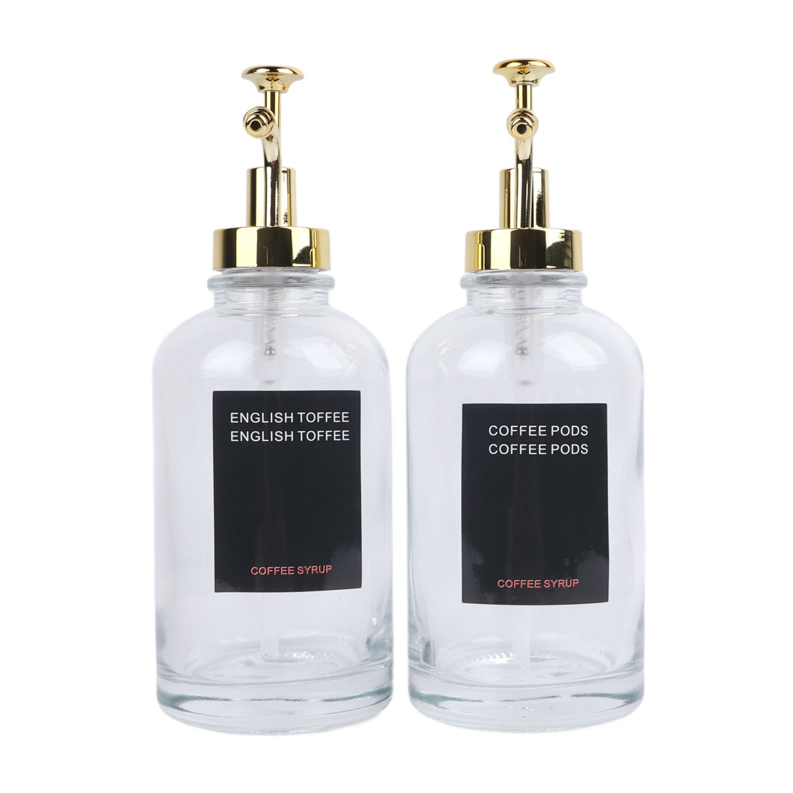 2PCS Coffee Syrup Dispensers 500ml Glass Bottle Dispenser With Stainless Steel
