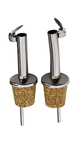 NDS Pack of 2 Stainless Steel & Cork Olive Oil Pourer & Drizzler with Hinged Flip Top Cap Ideal for Wine, Liquor, Coffee, Syrup & Vinegar Dispenser/Bottles