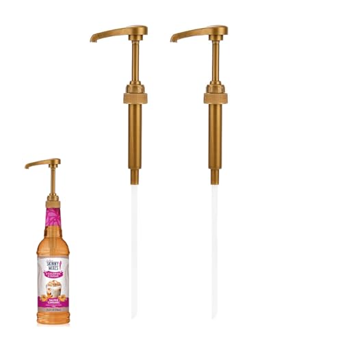 Gold Squirt Syrup Pump, (Pack of 2) Coffee Syrup Pump Dispenser | Coffee Syrup Bottle 750ml / 25.4oz Syrup Pump for Kitchen Dinning Bar Accessories | Compatible with Monin, Torani, Da vinci bottles