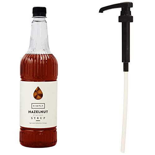 Simply Hazelnut Syrup, Vegan & Nut Free Flavoured Syrup for Coffee, Cocktails & Baking (1 Litre) and 8ml Syrup Portion Pump, Reusable Pump Dispenser for 1 Litre Bottles