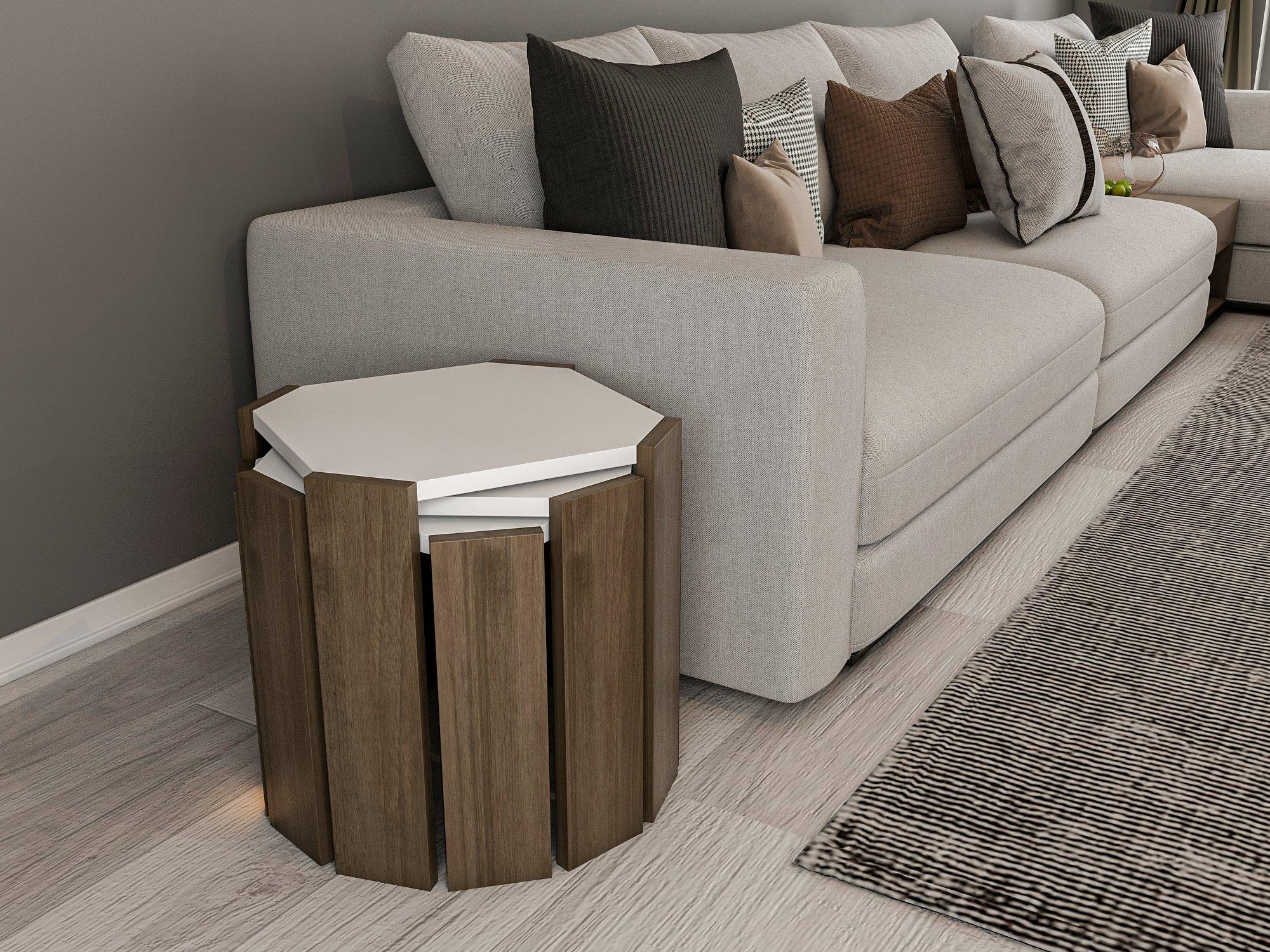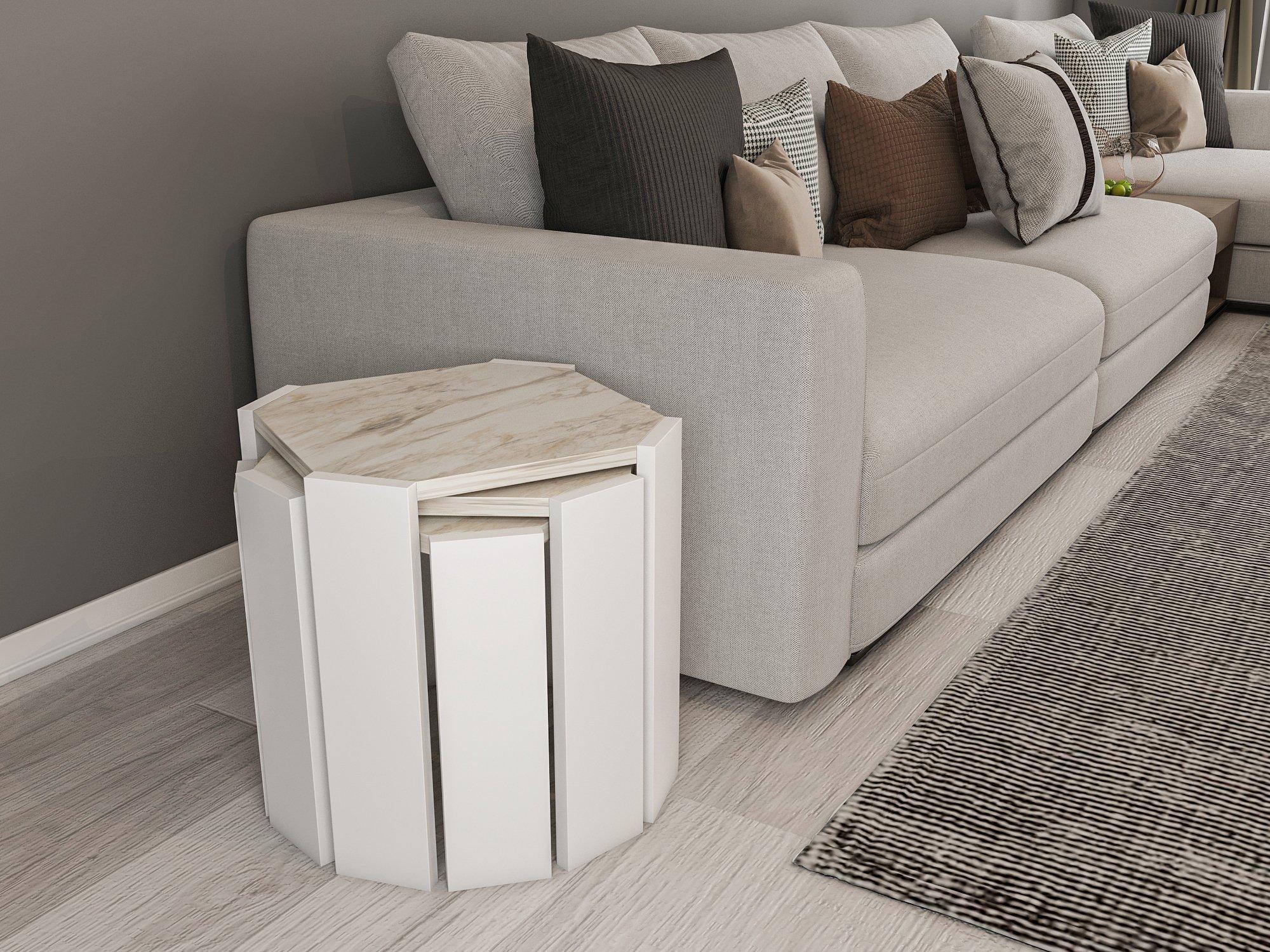 Scandinavian Style Coffee Table Set Sofa Side Nest Tables Modern Furniture White