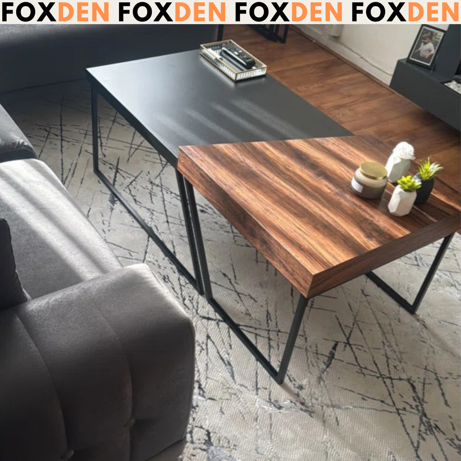 Modern Coffee Table Set 2 Side End Tables Industrial Rustic Metal Room Furniture