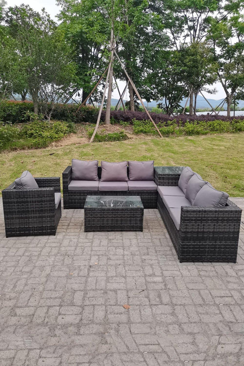 homedetail.co.uk Rattan Corner Group Furniture Set Outdoor Coffee Table Sofa Sto