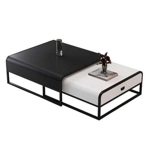 Modern leather coffee table set with drawers retractable coffee table, can be completely overlapped, does not take up space, strong load-bearing, suitable for living rooms, offices(Black+white,Small)