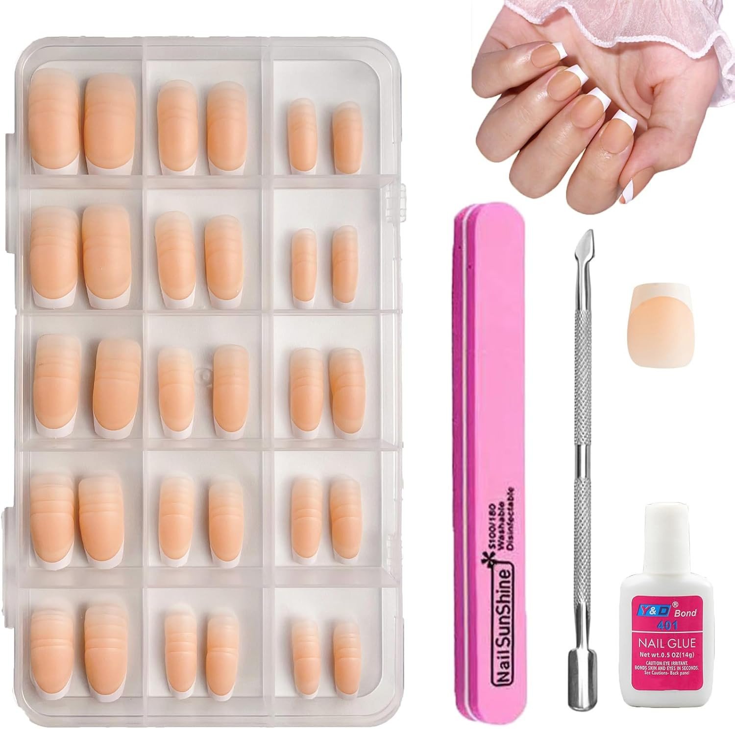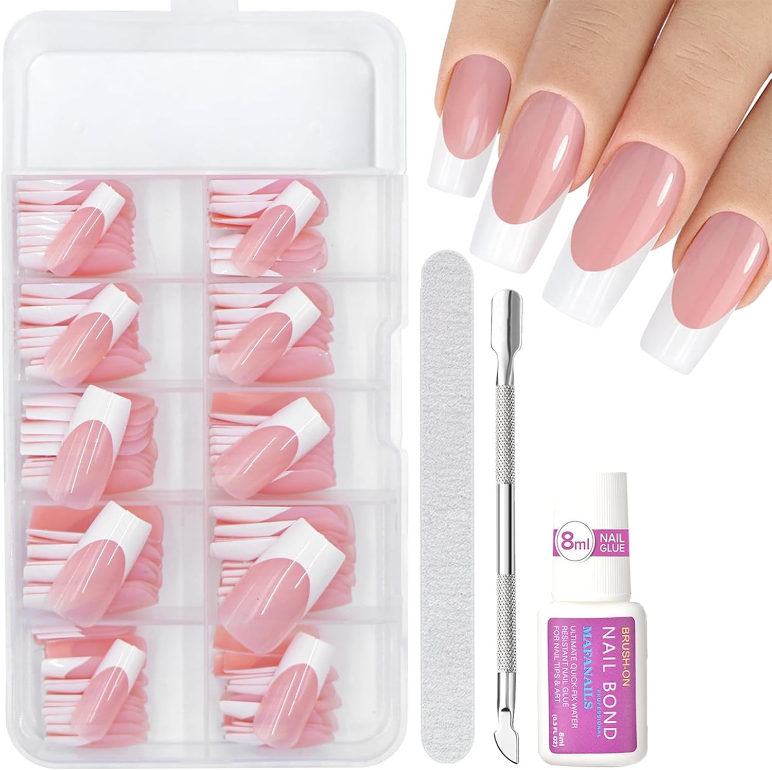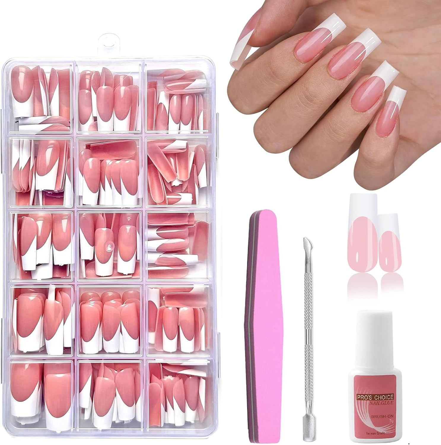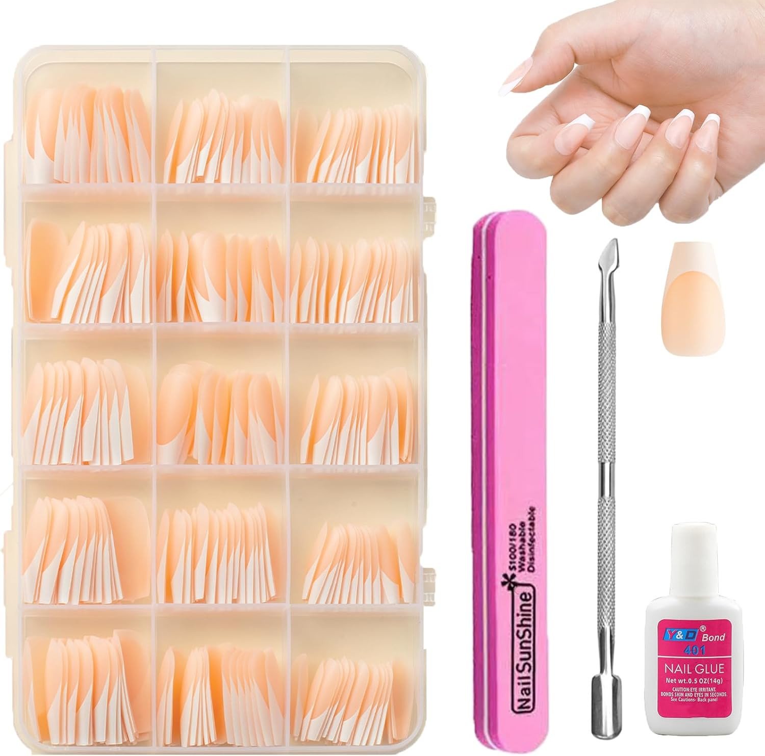French Tip False Nails - 150Pcs Coffin Press on Nails - Fake Nails Nude Color Fr