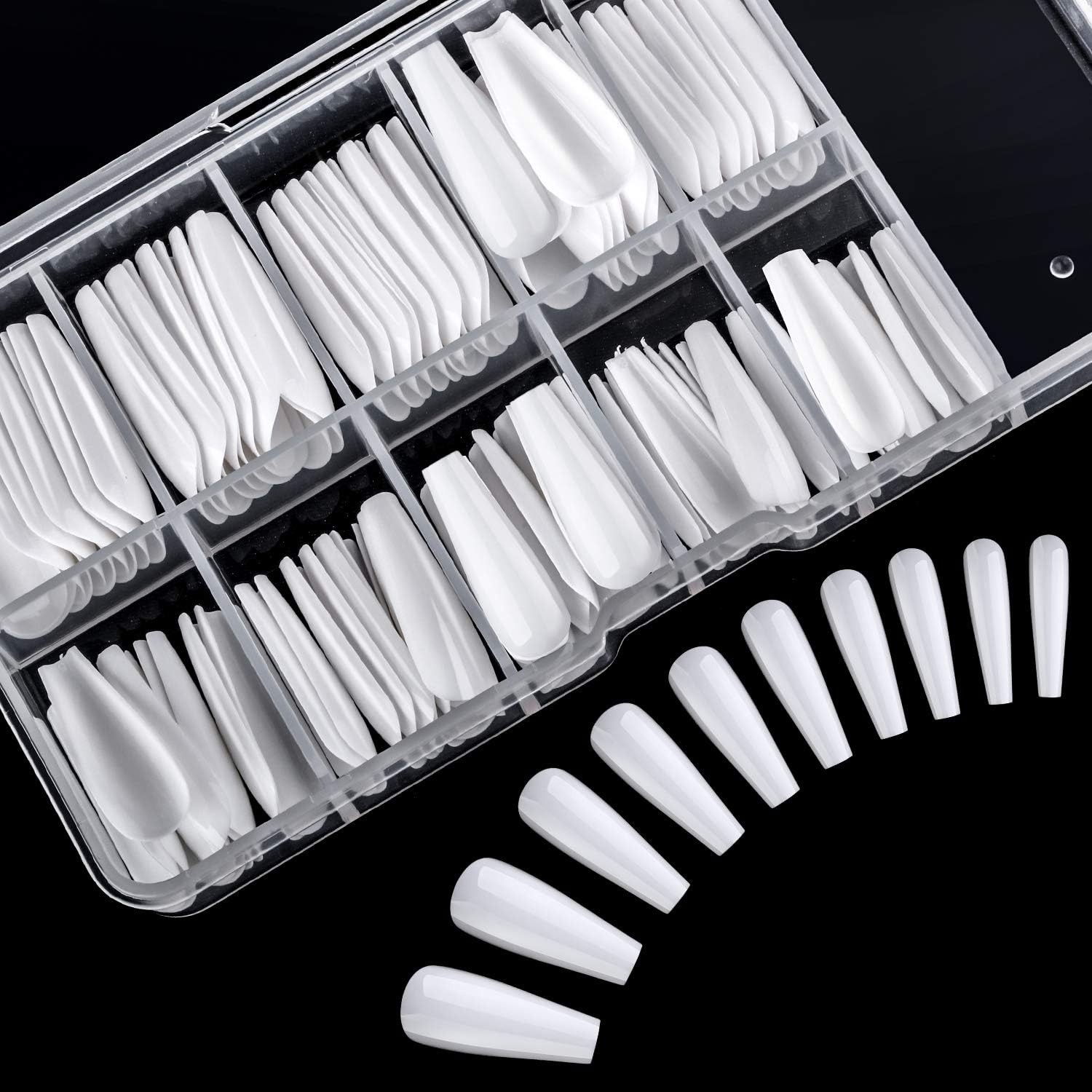 Makartt Medium Coffin Nails - 500pcs 10 Sizes Half Cover Clear Nail Tips, for Gel Extensions & DIY Fake Nails