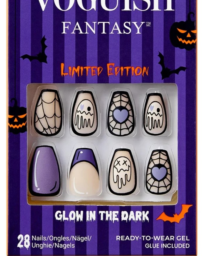 KISS VOGUISH FANTASY GLUE ON FALSE NAILS SHORT COFFIN HALLOWEEN NAILS FREAK SHOW