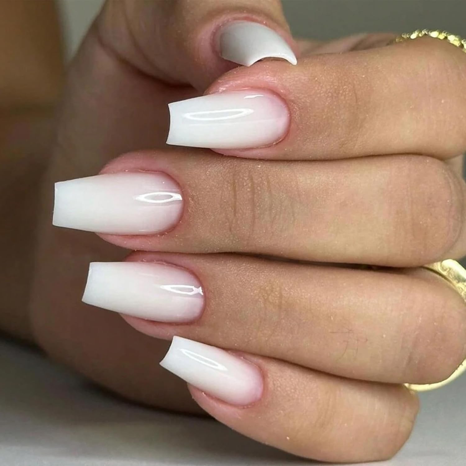 144 Piece Ombre Coffin Press on Nails, Short Artificial Nails Pink White Ombre-A