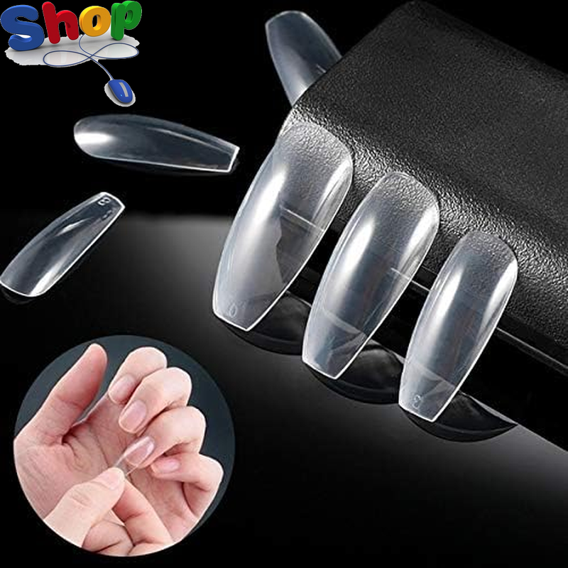 500 Pcs Long Coffin Nails Clear Coffin Acrylic Nail Tips Half Cover Rectangle F