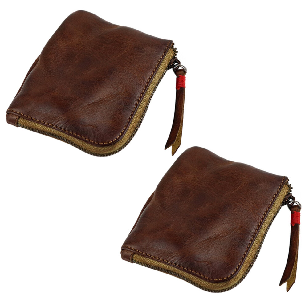 2X Leather Coin Purse,for Women&Men Vintage Handmade Wallet,Mini Card Holder Bag,Zipper Purses