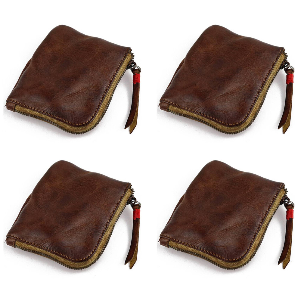 4X Leather Coin Purse,for Women&Men Vintage Handmade Wallet,Mini Card Holder Bag,Zipper Purses