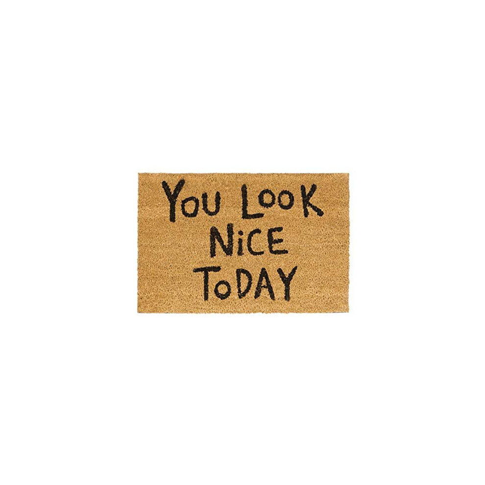 Relaxdays Doormat "You Look Nice Today" Coir Door Mat 40 x 60 cm Welcome Mat with PVC Anti-Slip Underside Coconut Fibre Floor Mat, Natural