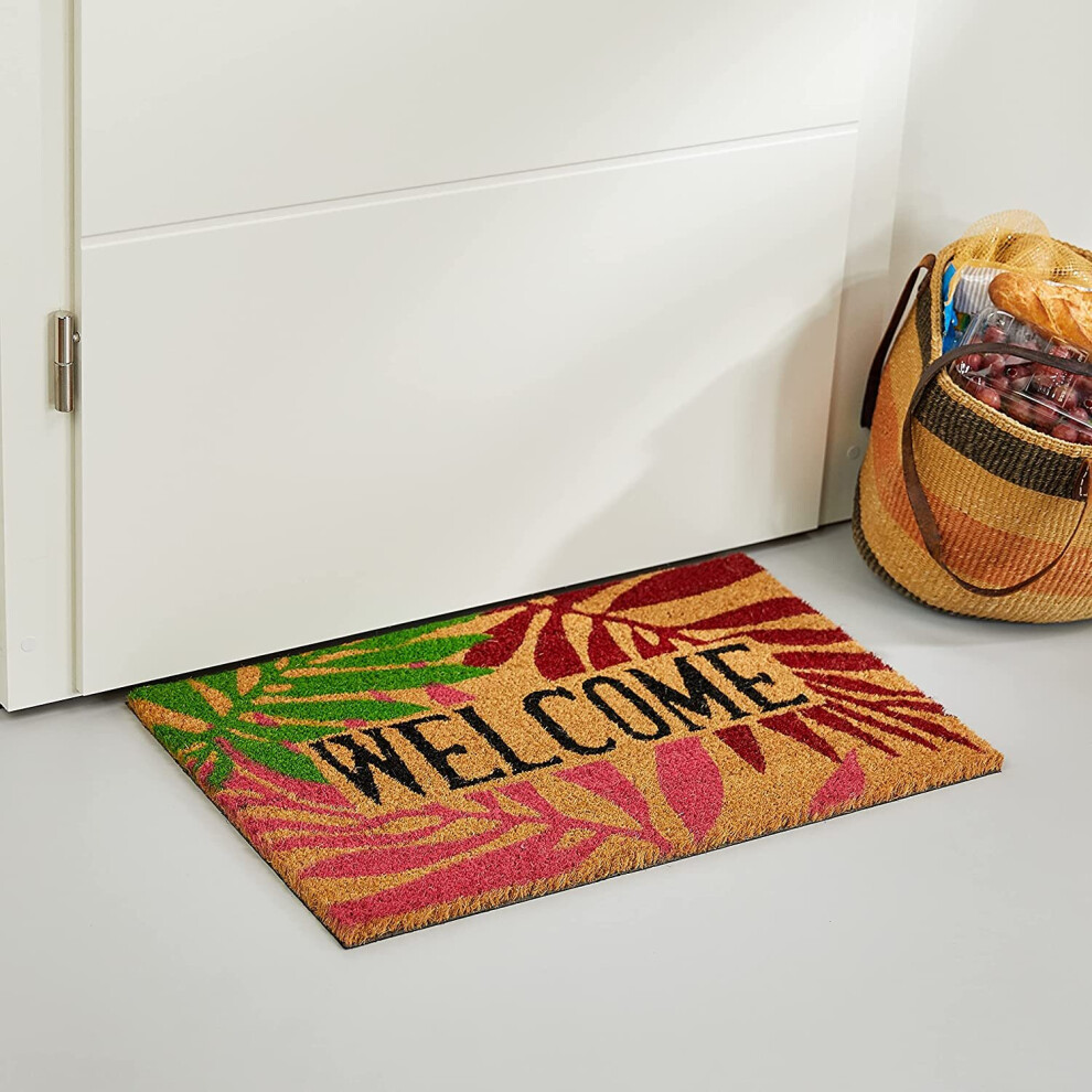 Relaxdays Coconut Fibre PALM LEAVES Doormat 40 x 60 cm Coir Welcome Mat with No-Slip Rubber PVC Underside, Multicolour