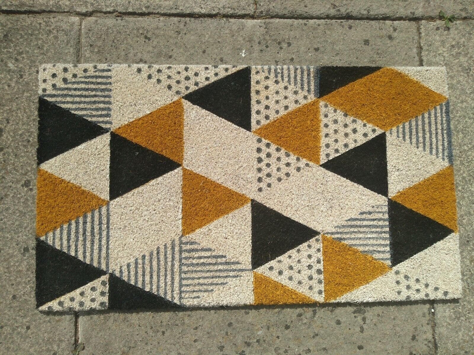 Coir Fibre Doormat with PVC Backing Black Grey White Amber Triangle 100% Natural