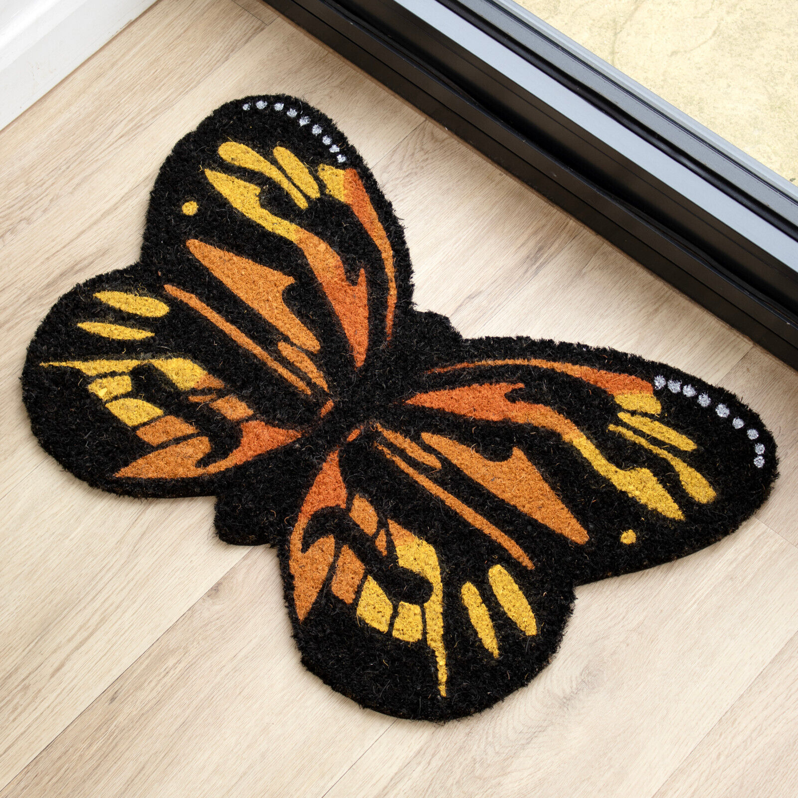 Orange & Black Butterfly Doormat Coir Large Novelty Non Slip Entrance Mat Decor