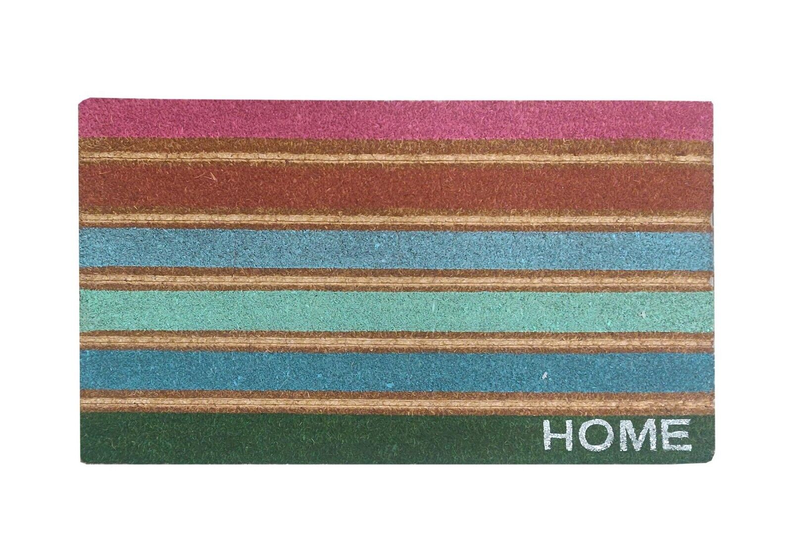 Large Embossed Coir Doormat 45 x 75cm Multi-Colour Stripes Natural Dirt Trap