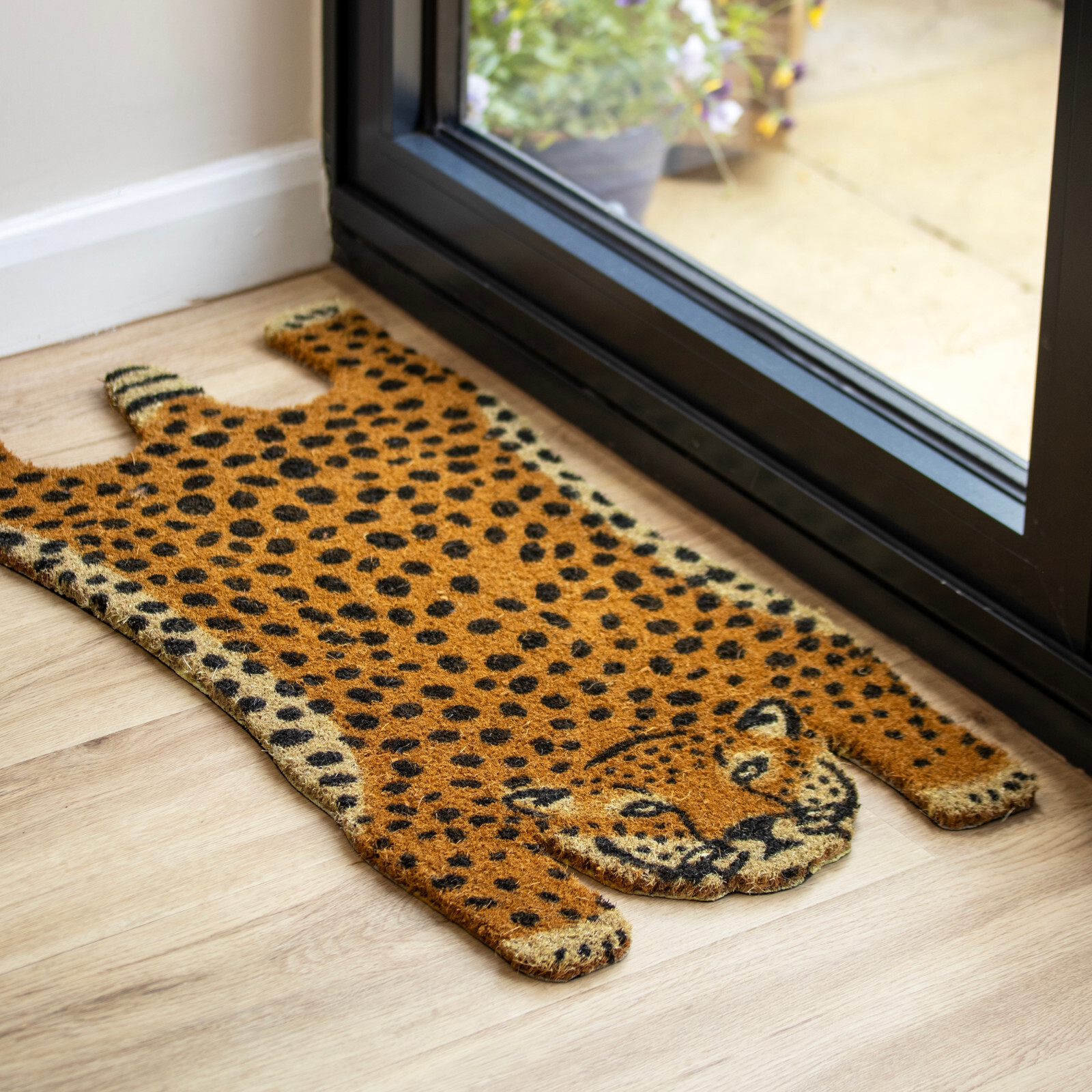 Large 75cm Cheetah Big Cat Coir Doormat Indoor Outdoor Front Boot Shoe Door Mat