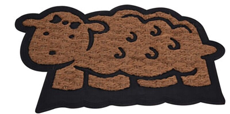 Large Non Slip Doormat Sheep Shape 40x60cm Rubber Backed Coir Indoor Outdoor Mat