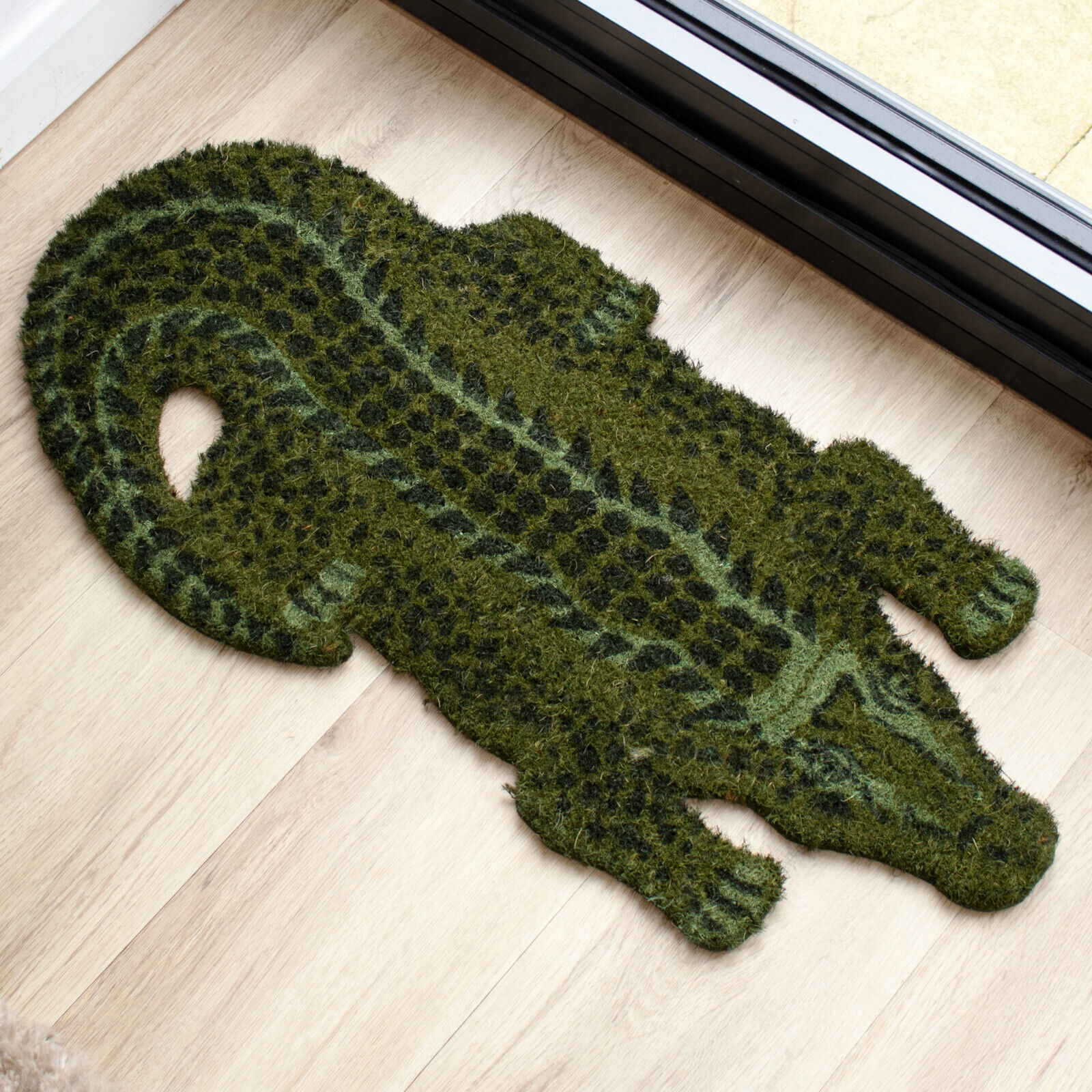 Green Crocodile Doormat Coir Large Green Animal Novelty Non Slip Entrance Mat
