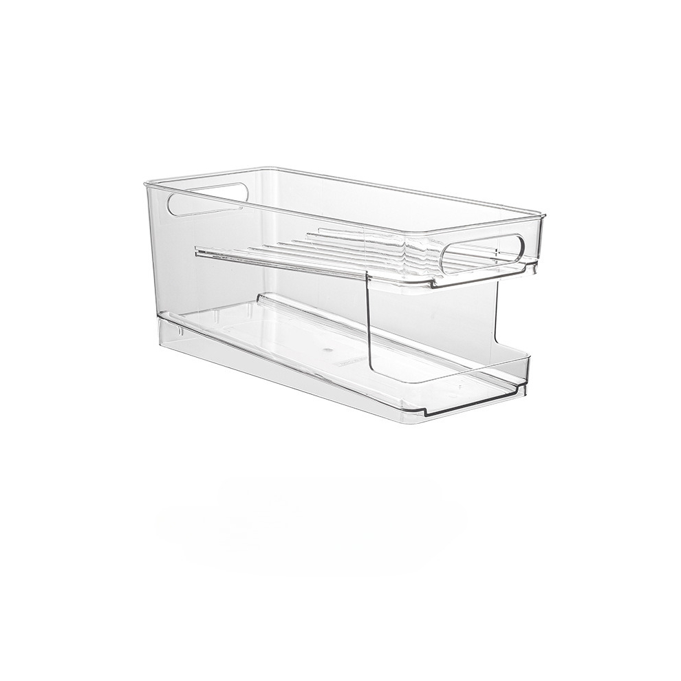 1pc 1 2 tier Beverage Rolling Storage Box Beer Cola Can Automatic Filling Sorting Artifact Drawer Type Storage Rack Fridge Organizer Bins For Freezer