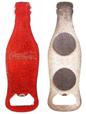 Coca Cola Glitter Red Bottle Cap Opener Fridge Magnet Bar Tool Set Beer Drink