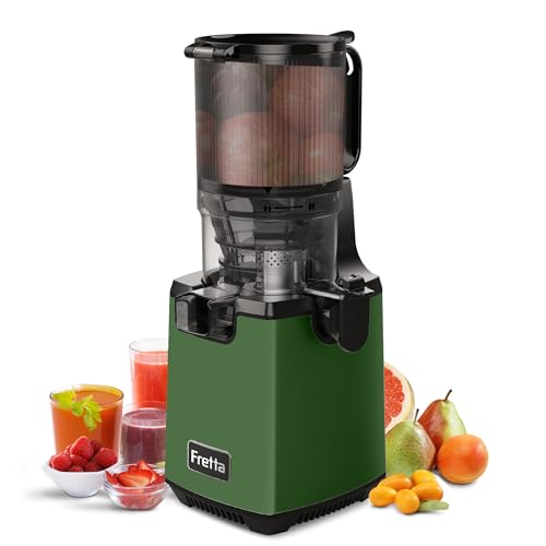 Fretta Cold Press Juicer Machines,Masticating Juicer with 140MM Feed Chute for Whole Fruits,Easy to Clean Self-Feeding Slow Juicer,High Juice Yield,PCTG Material BPA-Free,250W (Dark Green)