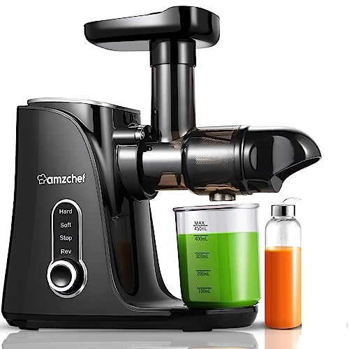 AMZCHEF Juicer Machines - Cold Press Slow Juicer - Masticating Juicer for Whole Fruits and Vegetables - Delicate Chew No Need to Filter - BPA Free Juice Extractor with 2 Cups and Brush - Black