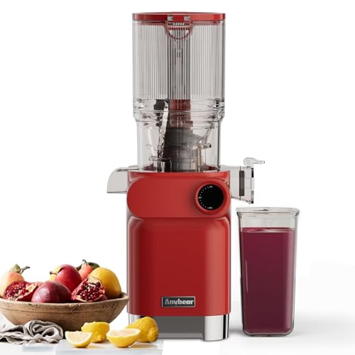 Anybear Slow Juicer 200W Cold Press Juicer 4.3" Large Feed Chute Fit Whole Fruits Vegetables | Upgraded Auger | Tritan Materials | BPA Free | Juice Recipes (Red)