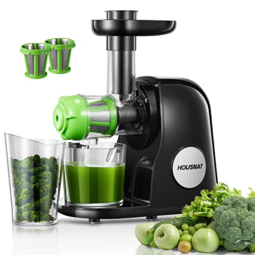 Juicer Machines, HOUSNAT Slow Masticating Juicers Whole Fruit and Vegetable, Professional Cold Press Juicer Extractor with Quiet Motor and Reverse Function Easy to Clean, Brush & Recipes Included