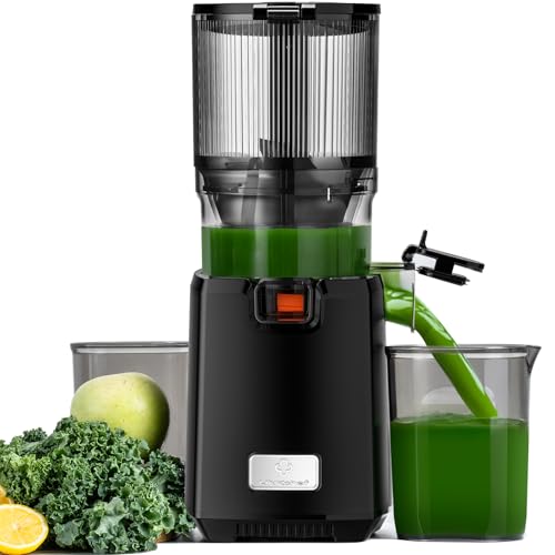 AMZCHEF Cold Press Juicer Machines, Slow Juicers with 126 MM Large Feed Chute for Whole Fruit and Vegetable, Durable Stainless Steel Juicer, Auto-cutting Auger, Double-Layer Filter