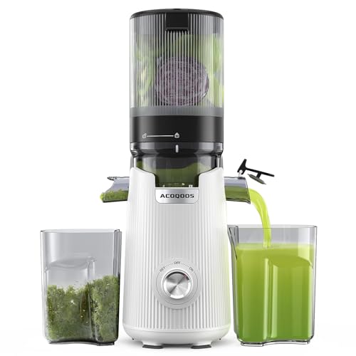 ACOQOOS Juicer Machines, 135MM Wide Chute for Whole Fruit and Vegetable,1.8L Auto-Feed Time-Saver, Slow Masticating High Yield, Easy to Clean Cold Press Juicer with 2 Cups, White
