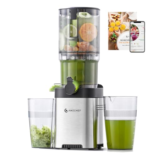 AMZCHEF Cold Press Juicer Machines, Slow Juicers with 118 MM Large Feed Chute for Whole Fruit and Vegetable, Durable Stainless Steel Juicer, Auto-cutting Auger, Double-Layer Filter