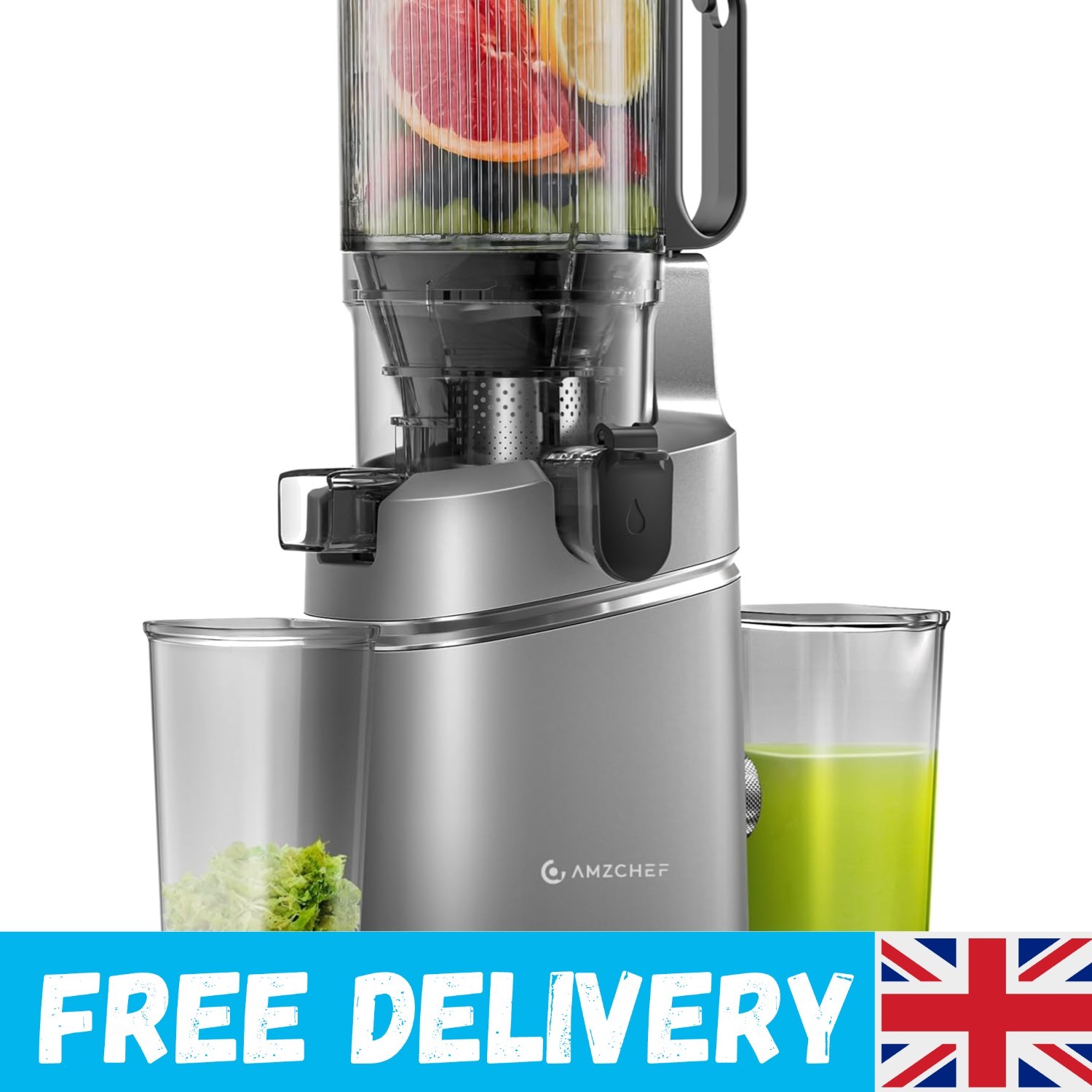 AMZCHEF Cold Press Juicer 50MM Large Feed Chute Slow Masticating Juicer Grey