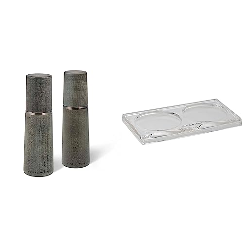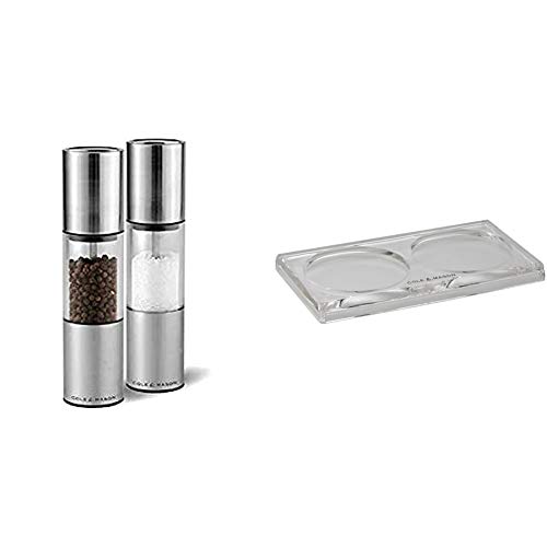 Cole & Mason H56390P Oslo Salt and Pepper Mills 185mm 2 x Salt and Pepper Grinders & H306119 Ramsgate Clear Salt and Pepper Mill Tray (H) 13mm x (W) 95mm x (D) 157mm