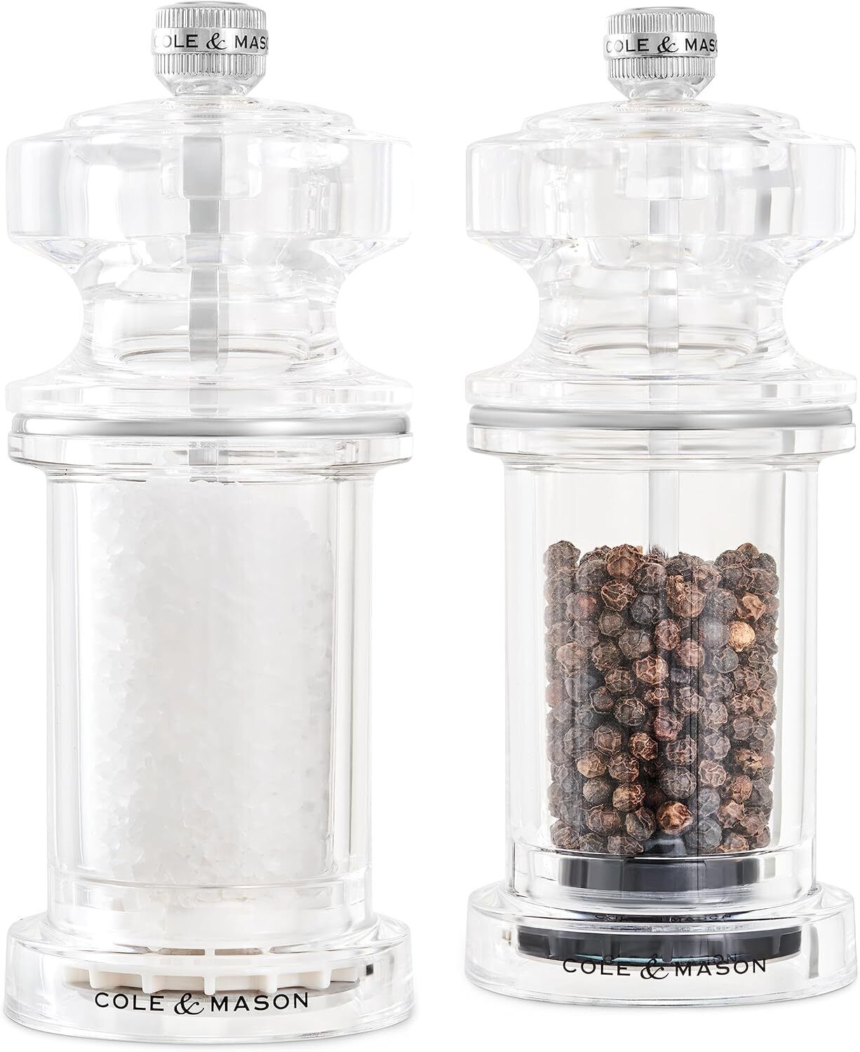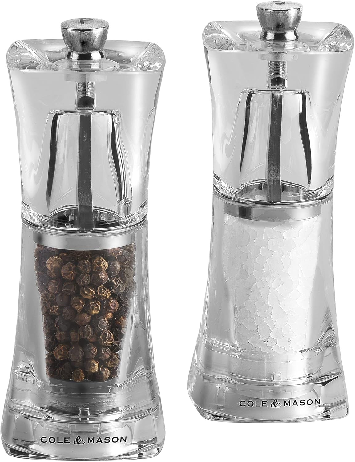 Cole & Mason Crystal Clear Salt and Pepper Mills, Adjustable Grind Precision+,