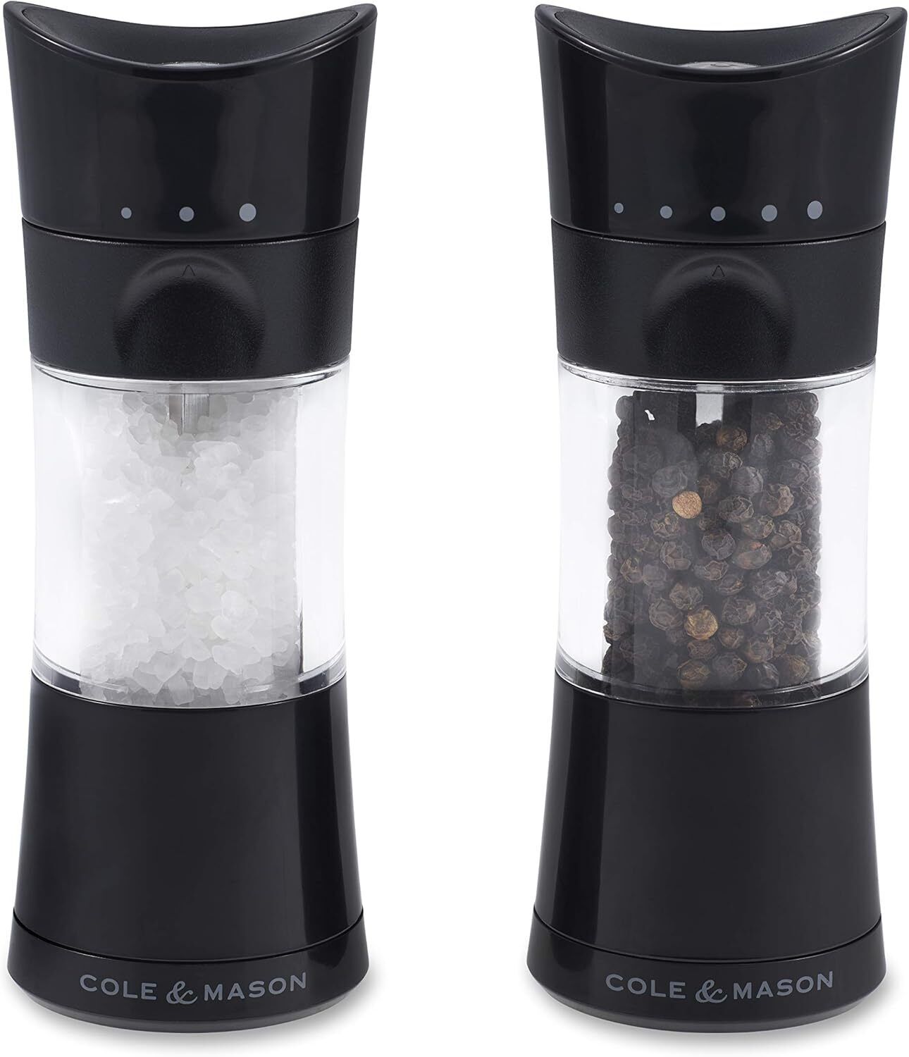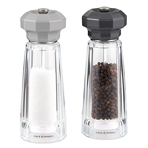 Cole & Mason Everyday Gift Set Salt and Pepper Grinders, 110mm Acrylic Salt and Pepper Mill Set with Adjustable Grind Settings, Ceramic Mechanism, Compact Mills Ideal for Picnics and Camping