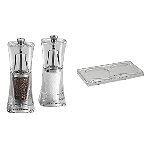Cole & Mason H57273P Bobbi Salt and Pepper Mills / H306119 Ramsgate Clear Salt and Pepper Mill Tray | Bundle | Lifetime Mechanism Guarantee - Mills