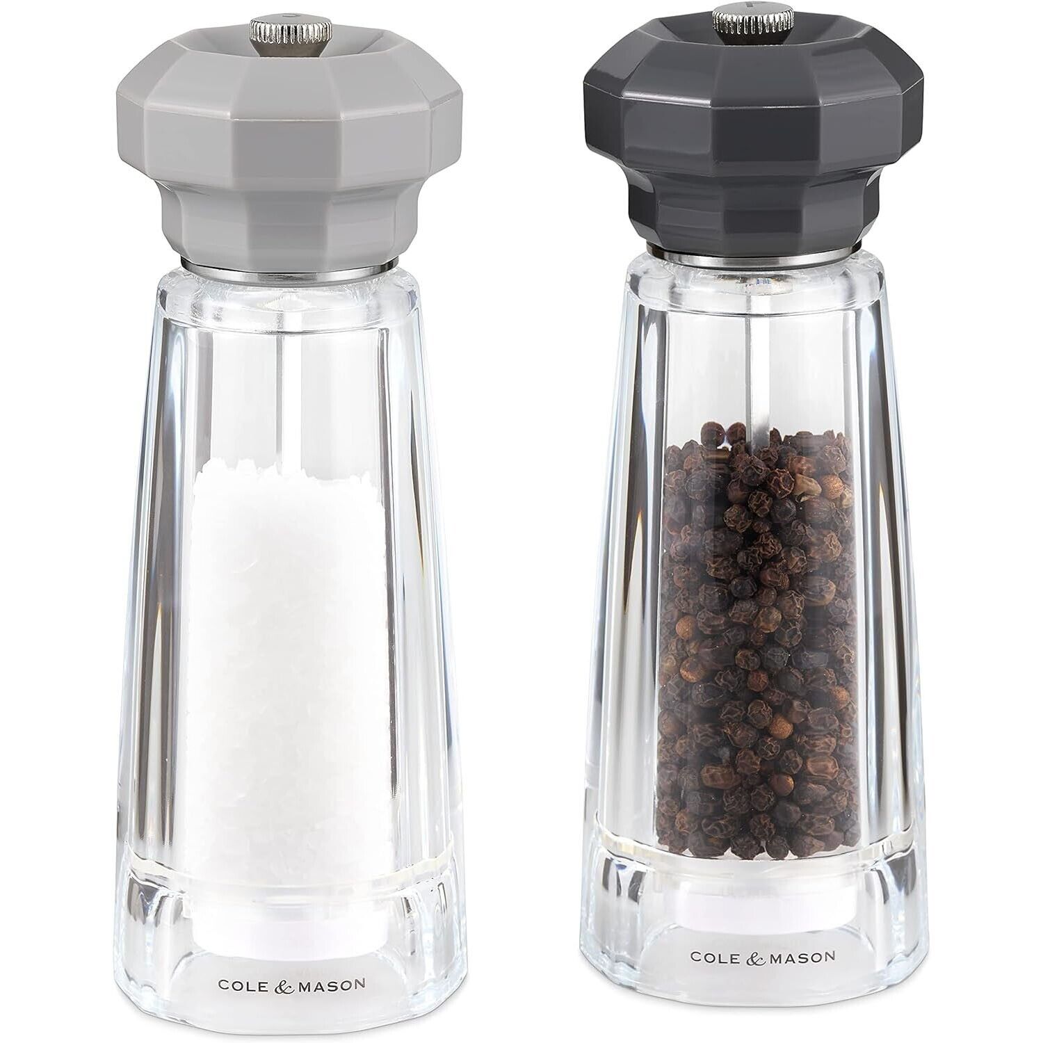 Cole & Mason H312009 Lowestoft Grey/Clear Salt and Pepper Mill Set, Adjustable Grind, Acrylic, 175mm, Gift Set, Includes 2 x Salt and Pepper Grinders