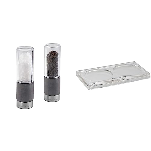 Cole & Mason H56390P Oslo Salt and Pepper Mills 185mm 2 x Salt and Pepper Grinders & H306119 Ramsgate Clear Salt and Pepper Mill Tray (H) 13mm x (W) 95mm x (D) 157mm