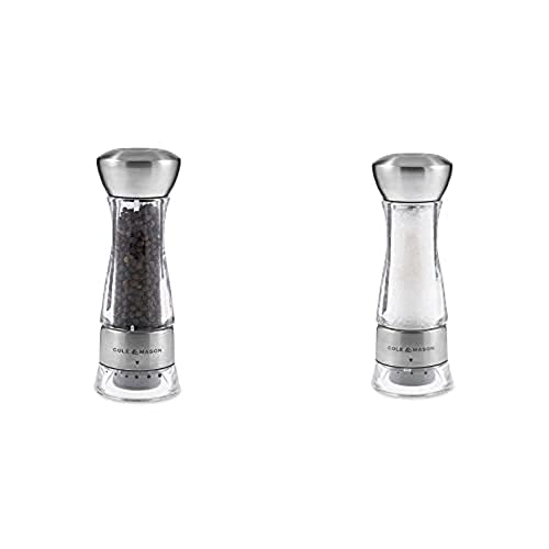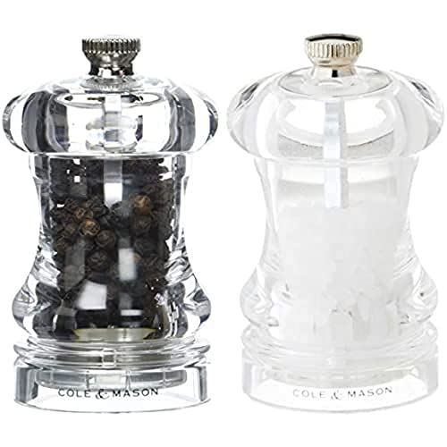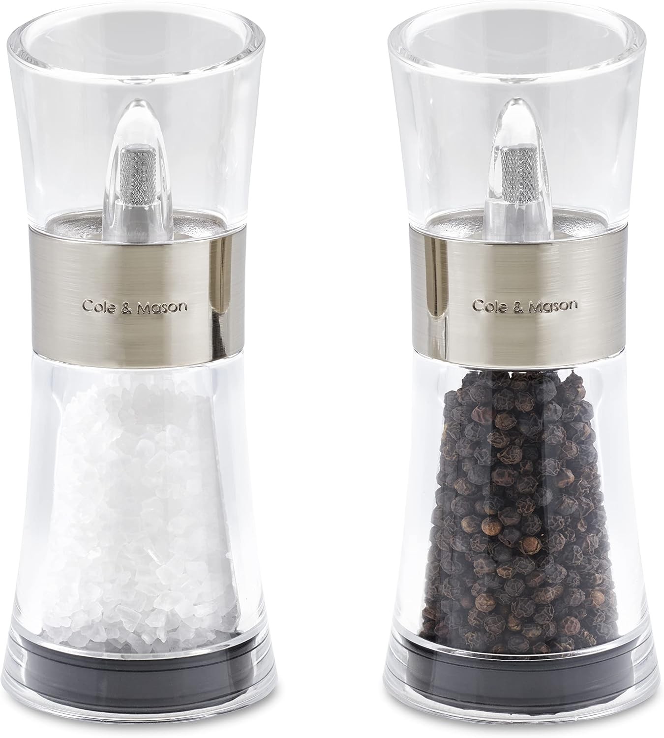 Cole & Mason Everyday Gift Set Salt and Pepper Grinders, 110mm Acrylic Salt and Pepper Mill Set with Adjustable Grind Settings, Ceramic Mechanism, Compact Mills Ideal for Picnics and Camping