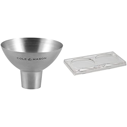 Cole & Mason Dover Stainless Steel Funnel & Ramsgate Acrylic Salt and Pepper Mill Tray | Silver | (H) 13mm x (W) 95mm x (D) 157mm