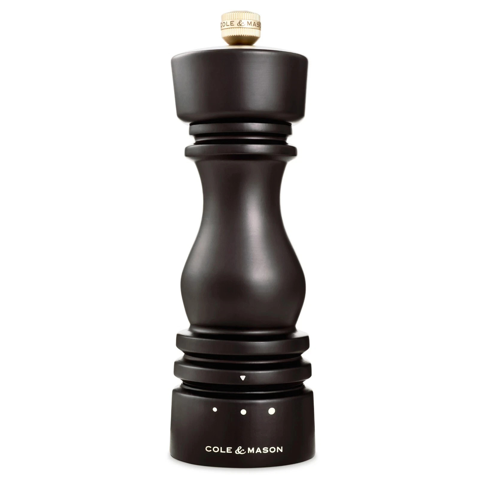 Cole & Mason London Pepper Mill, Grind Select Adjustable Coarseness, Chocolate Wood, 180mm, Refillable Manual Grinder