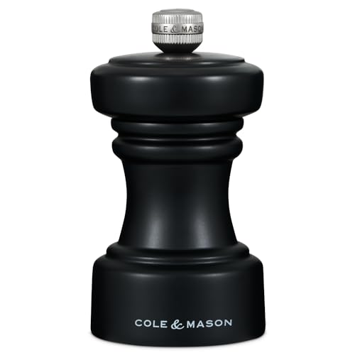 Cole & Mason Hoxton Black Gloss Pepper Mill, Precision+ Carbon Mechanism, Compact Pepper Grinder with Adjustable Grind, Beech Wood, 104mm, Seasoning Mill, Lifetime Mechanism Guarantee