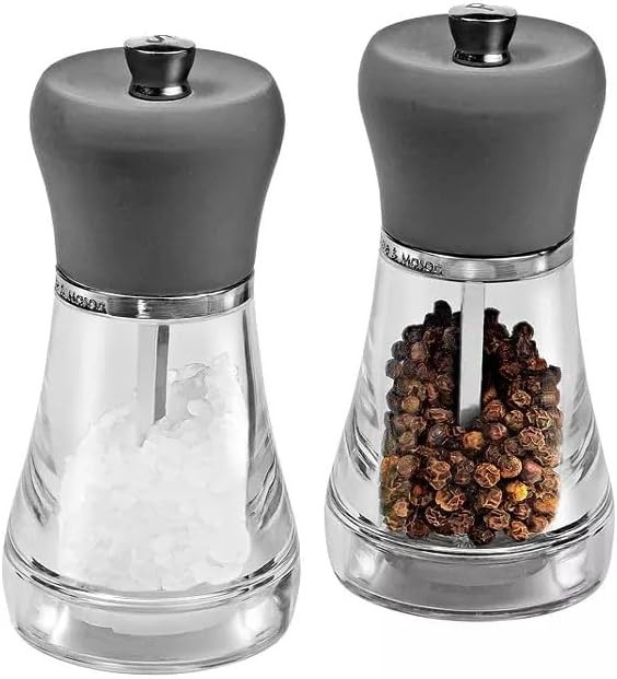 Cole & Mason London Salt Shaker and Pepper Mill Set, 13cm, Refillable Acrylic Seasoning Set, Adjustable Coarseness Pepper Grinder