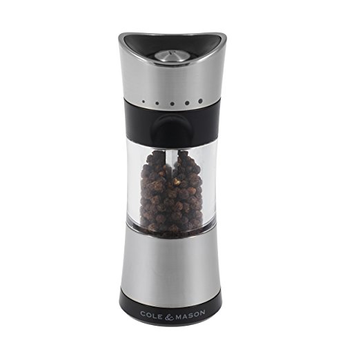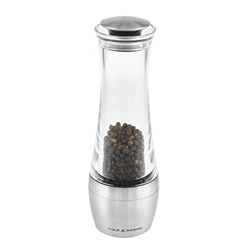 Cole & Mason H308791P Amesbury Pepper Mill, Precision+ Stemless, Stainless Steel/Acrylic, 190 mm, Single, Includes 1 x Pepper Grinder
