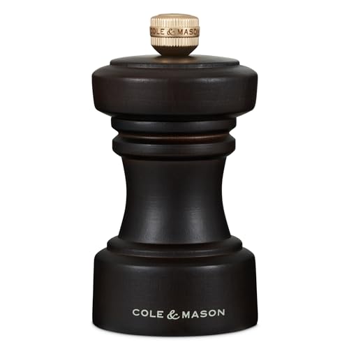 Cole & Mason Hoxton Chocolate Wood Pepper Mill, Precision+ Carbon Mechanism, Compact Pepper Grinder with Adjustable Grind, Beech Wood, 104mm, Seasoning Mill, Lifetime Mechanism Guarantee