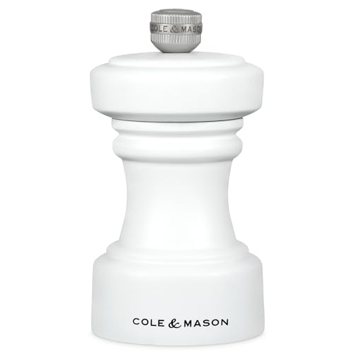 Cole & Mason H233058 Hoxton White Wood Pepper Mill, Precision+ Carbon Mechanism, Compact Pepper Grinder with Adjustable Grind, Beech Wood, 104mm, Seasoning Mill, Lifetime Mechanism Guarantee